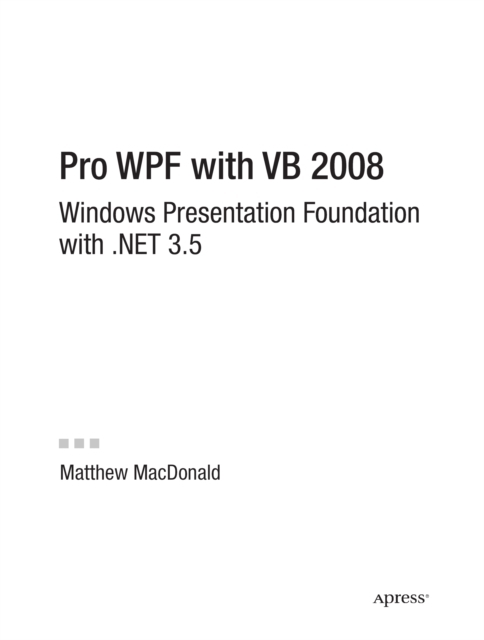 This book explains how WPF works from the ground up. It will be one of the first books available on the topic, and also one of the most detailed. It follows on from the author's previous, and highly successful books, covering Windows Forms and earlier versions of WPF. przeczytaj całość