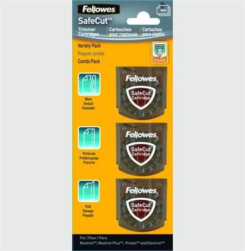 Rotační nástroje značky Fellowes patří mezi náhradní díly. Ideálně poslouží rezacím přístrojům Electron, Proton a Neutron. Balení obsahuje jeden rotační nůž s řezem "vlnky", jeden nástroj pro rýhování papíru a jeden pro perforaci.