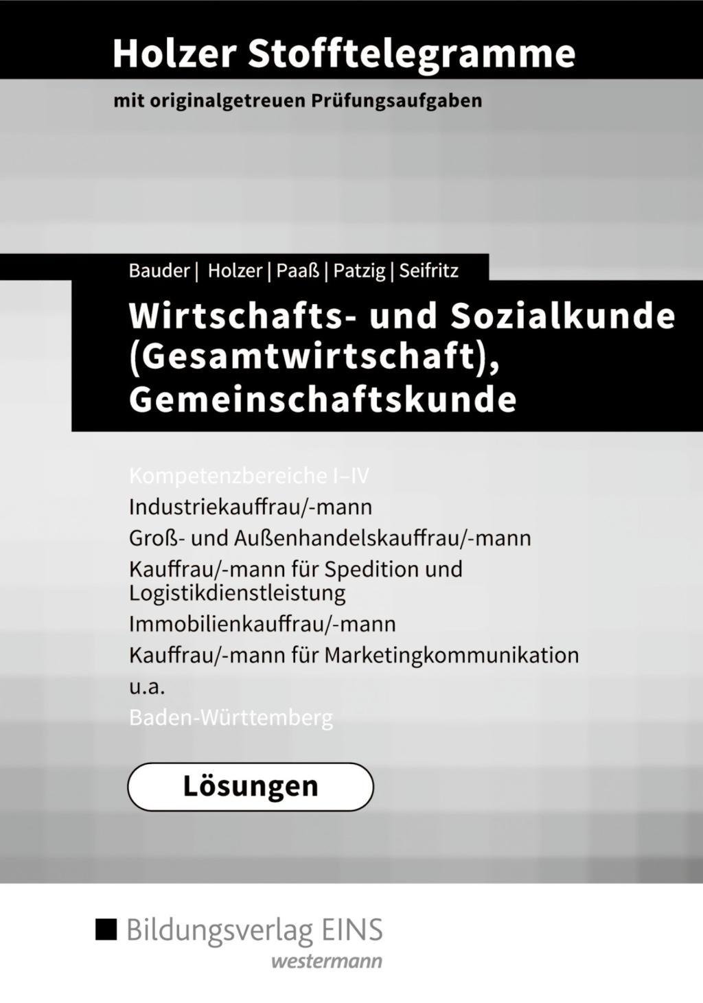 Holzer Stofftelegramme Wirtschafts- und Sozialkunde (Gesamtwirtschaft), Gemeinschaftskunde, Deutsch. Kompetenzbereiche I-IV: Lös (niemiecki)