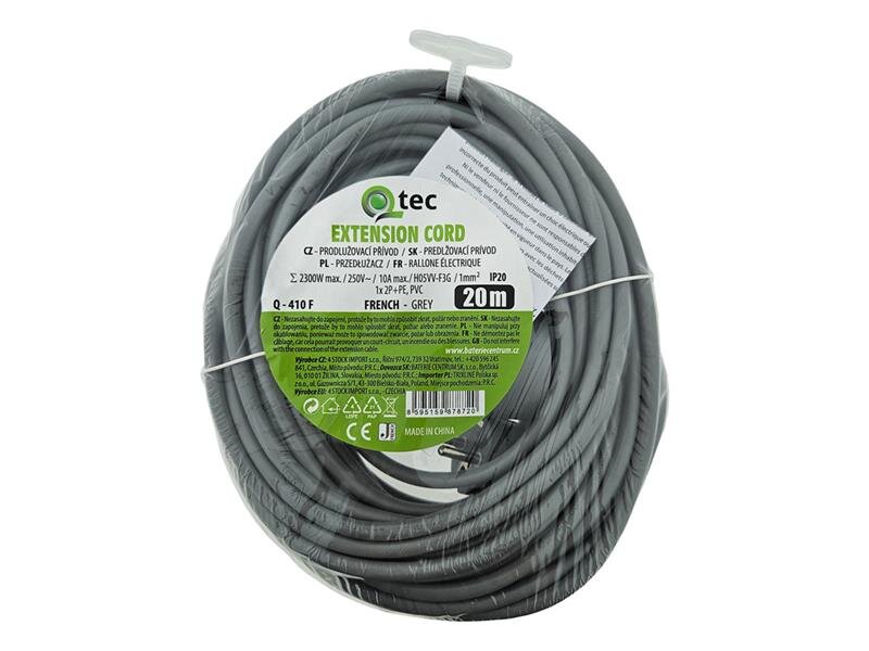 Slouží k prodloužení elektrické energie tam, kam pevná zásuvka nedosáhne.Technické parametry:Délka: 20mPočet zásuvek: 1Vypínač: neBarva: šedáMateriál: PVCTyp: FRENCHMaximální zatížení: 250V ~ , 16A max., Σ 3680W max.Typ kabelu: H05VV-F 3G 1mm²Určeno pro vnitřní použitíKrytí: IP20...