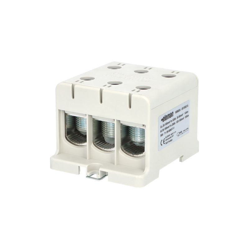 Univerzální připojovací svorka UK 150/3 A - šedá.Standardní řada univerzálních svorek s širokou nabídkou připojitelnosti vodičů (1,5 - 240 mm2). Umožňuje připojení jak hliníkových tak měděných vodičů a to až do 240 mm2. Jedná se o 1-pólové svorky v plastovém pouzdře (vyjma sestavy UK 50/3x1, ta...