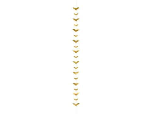 Závěsná dekorace zlatí netopýři 1,5 m je jedinečným doplňkem pro Halloween nebo jakoukoliv superhrdinskou párty ve stylu Batmana.  Snadná instalace: Dekorace je snadno připevnitelná a určená pro opakované použití. Balení: 1 ks. przeczytaj całość