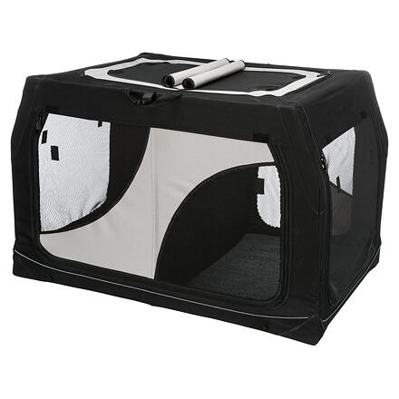 dvojitý transportní box stabilní kovová konstrukce s rychloupínacím mechanismem lze otevřít ze 4 stran včetně odnímatelného oddělovače se síťovými vložkami pro dobré proudění vzduchu horní síť lze přikrýt pro ochranu zvířete uvnitř suchý zip pod boxem zabraňuje klouzání může být také použito... przeczytaj całość