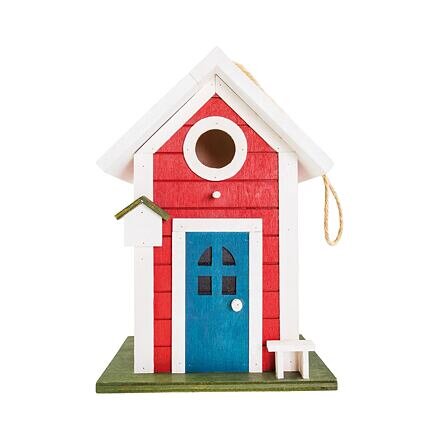 budka pro venkovní ptactvo v designu červené chaloupky k postavení nebo zavěšení, kvalitní provedení povětrnostním podmínkám odolná střecha  materiál: červené cedrové dřevo, kov rozměry: 18 x 15 x 26 cm barva:  červená, bílá przeczytaj całość