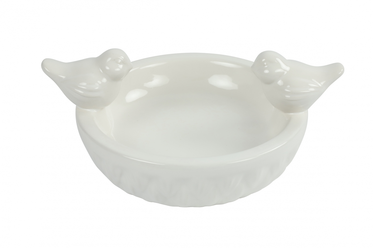 Keramické pítko pro ptáky Jorinda S bílé 19,5x19,5x10 cm