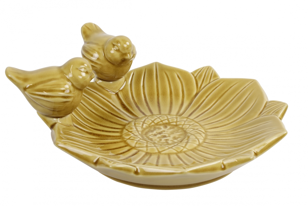 Keramické pítko pro ptáky Fleuri L žluté 27x26x10 cm