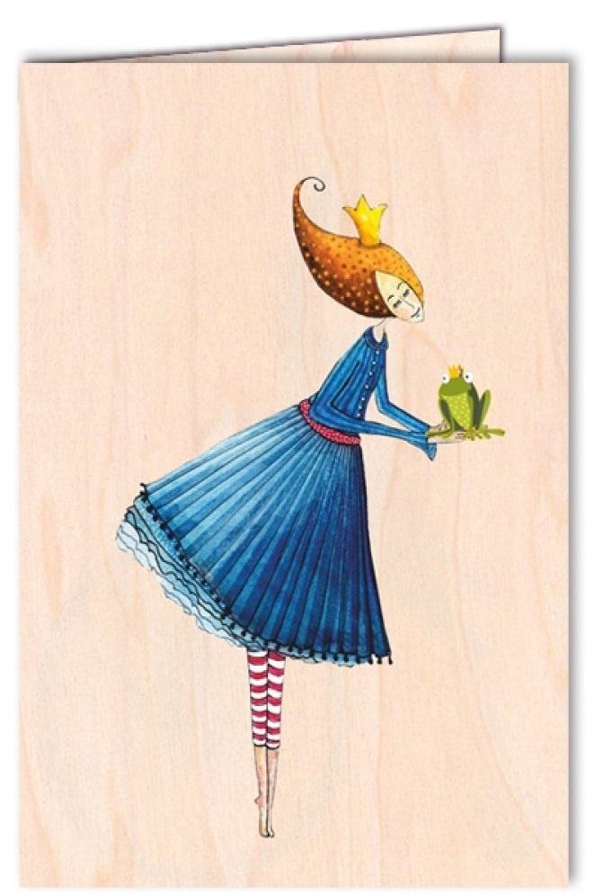 Karnet drewniany C6 + koperta Kobieta z żabą