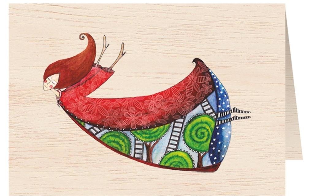 Karnet drewniany C6 + koperta Kobieta w sukni