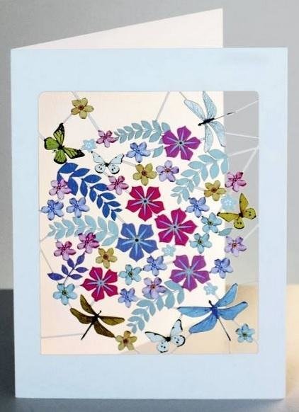 Karnet PM914 wycinany + koperta Ważki i kwiaty