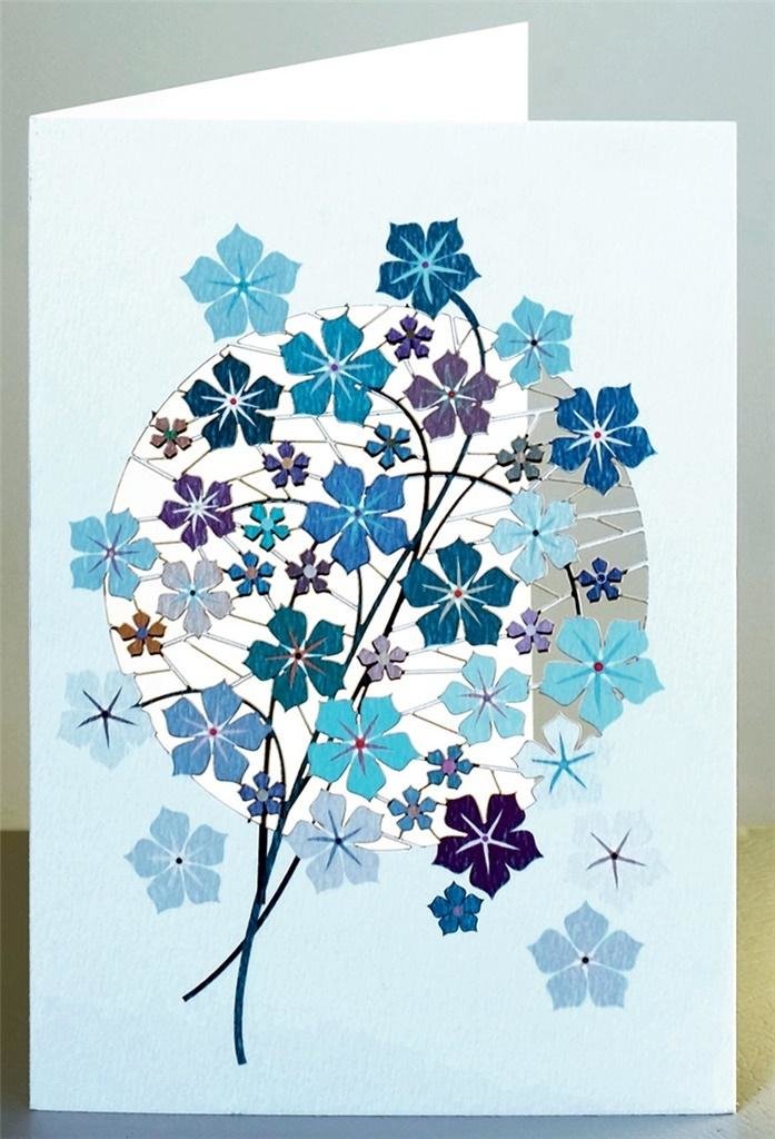 Karnet PM905 wycinany + koperta Niebieskie kwiaty