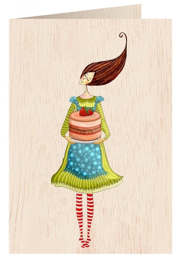 Karnet drewniany C6 + koperta Tort truskawkowy