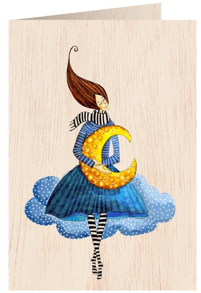 Karnet drewniany C6 + koperta Kobieta na obłoku