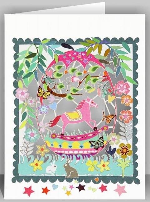 Karnet laserowo wycinany z kopertą. Z tyłu miejsce na życzenia. Wyprodukowany w Wielkiej Brytanii. przeczytaj całość