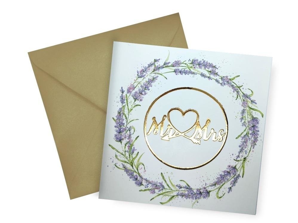 Karnet w formacie 15 x 15 cm. Wydrukowany na wysokiej jakości papierze. Uszlachetniony złotym metalicznym lakierem 3D. W zestawie perłowa koperta. przeczytaj całość