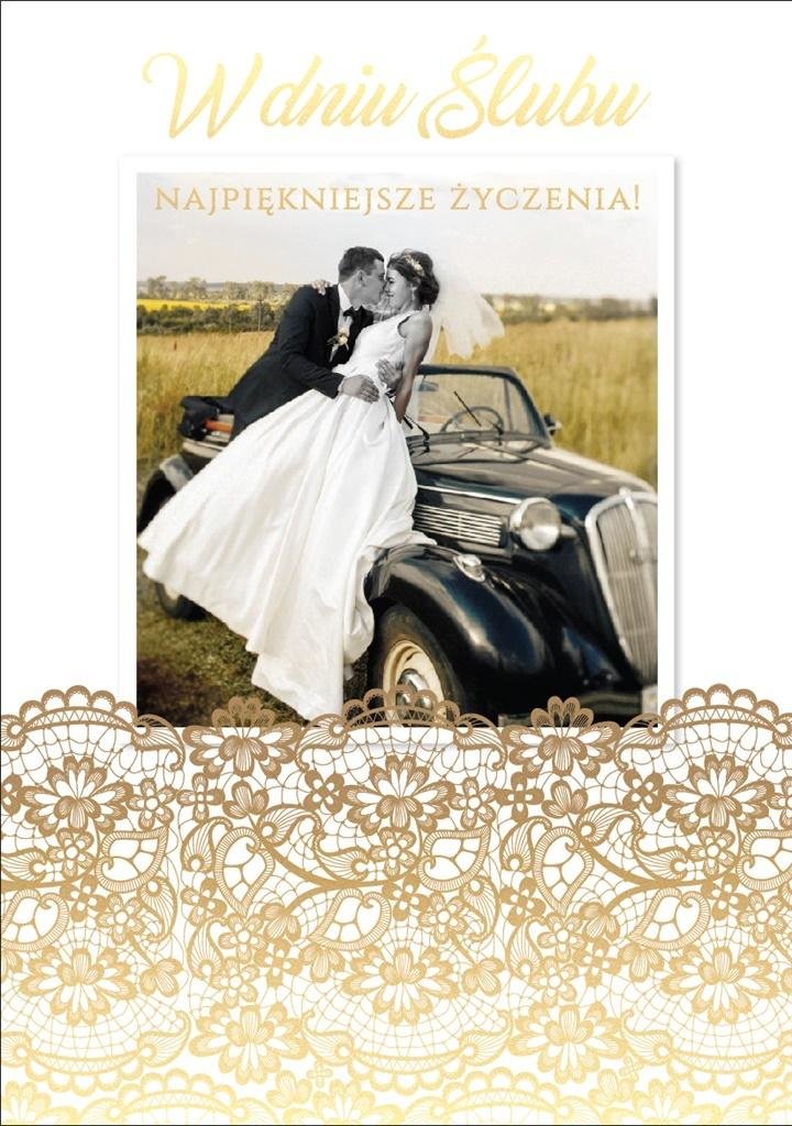 Kartka wielkości B6, zdobiona w zależności od wzoru metaliczną folią lub brokatem, kartka z tekstem w środku, kolorowa w środku i na zewnątrz. przeczytaj całość