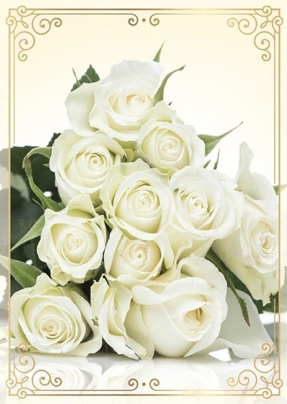Kartka wielkości B6. Katka ze zdjęciem kwiatów, otoczona delikatną ramką, stonowany kolor, delikatnie zdobiona. Kartka nie posiada tekstu w środku, dzięki czmeu można wypisać własne życzenia. Do kartki dołączona jest koperta. przeczytaj całość