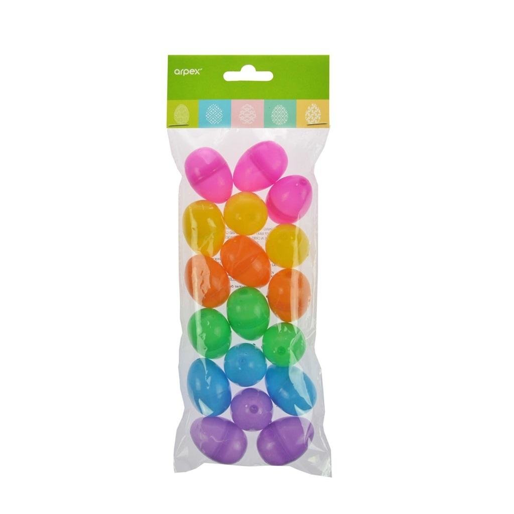 Małe, kolorowe, otwierane jajeczka ubarwią i udekorują każdy wielkanocny stół. Jajeczka otwierane z możliwością schowania niespodzianki w środku. Wysokość jajeczek: 4,5 cm. 18 szt. w opakowaniu. przeczytaj całość