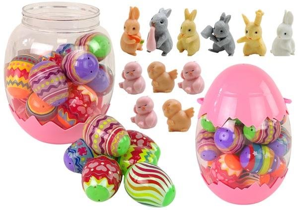 Jajo Dekoracja Wielkanoc Pisanki Niespodzianka Króliczki 18 SztukPiękne ozdobione jajeczka wielkanocne będą idealną dekoracją na święta Wielkanocne, dodadzą klimatu świąt Wielkiej Nocy i stworzą ciepłą atmosferę w domu. Ale to nie wszystko! Wewnątrz każdej pisanki kryje się niespodzianka.Zestaw...
