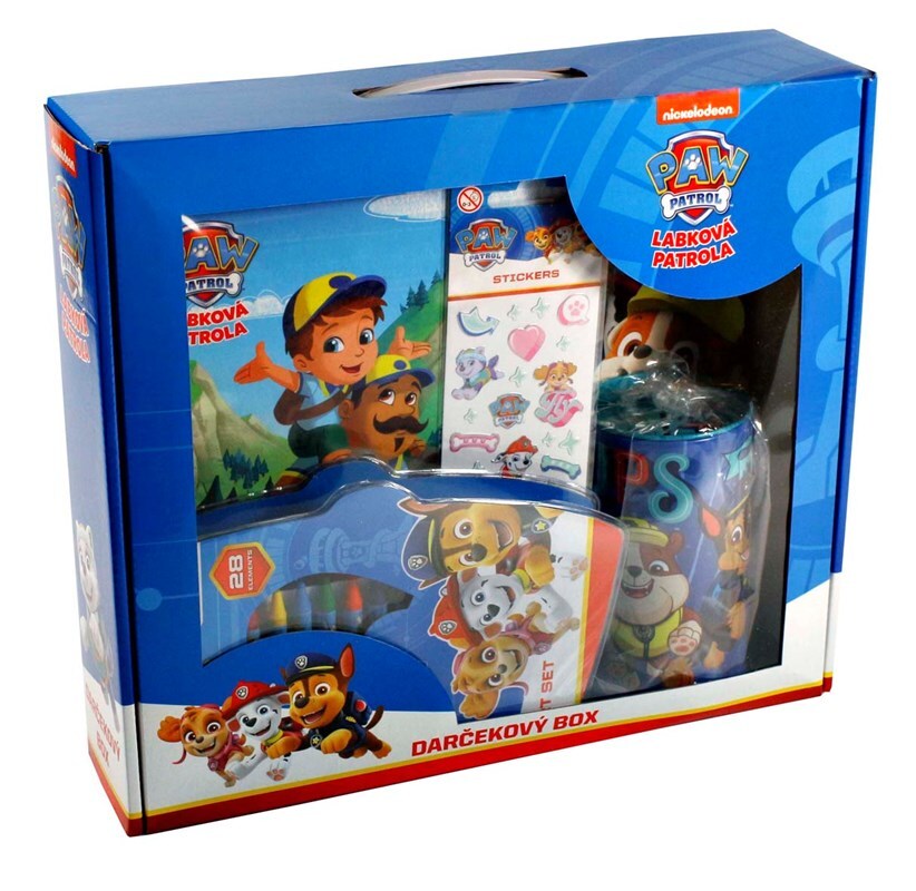 Užite si veľa zábavy so statočnými šteniatkami z Labkovej patroly a s úžasným kufríkom plným darčekov! Nájdete v ňom knihu Rozprávky pre všetky labky, výtvarnú sadu s farbičkami, štetcom a voskovkami, pestrofarebné samolepky, praktickú pokladničku a maľovanky s úlohami Hravé maľovanie s labkami....