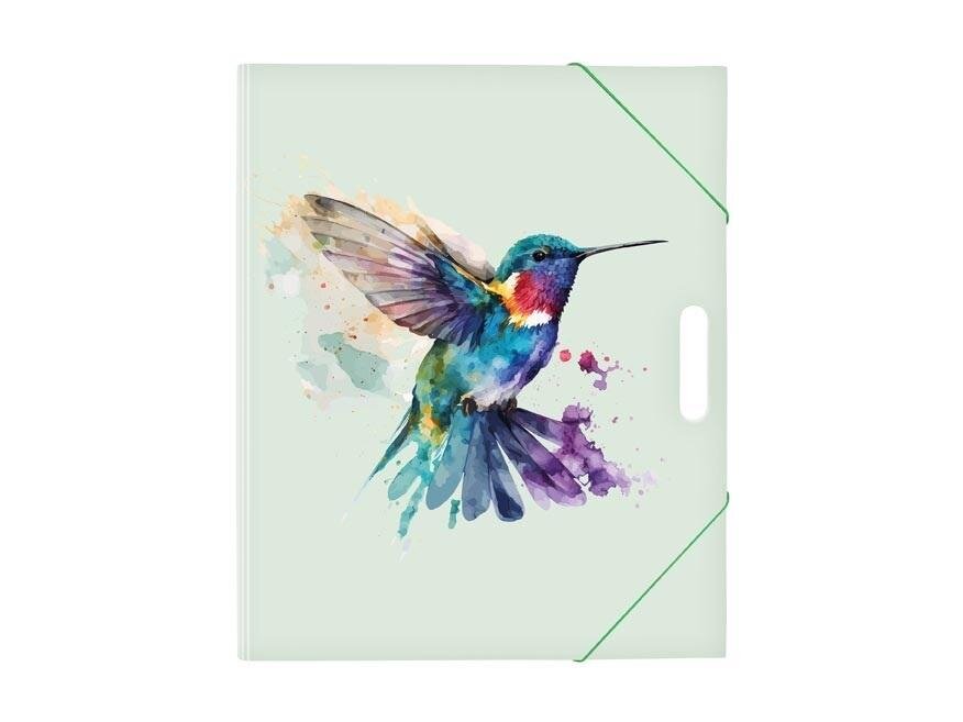Teczka na rysunki z dobrej jakości tektury powleczonej laminatem. Zagięte rogi wewnątrz teczki pomagają w utrzymaniu rysunku wewnątrz teczki. Teczka posiada gumkę, która zabezpiecza rysunki oraz pomaga w przenoszeniu ich.Format: A3Kolor: zielonyWzór: koliberMateriał: tektura z laminatem przeczytaj całość