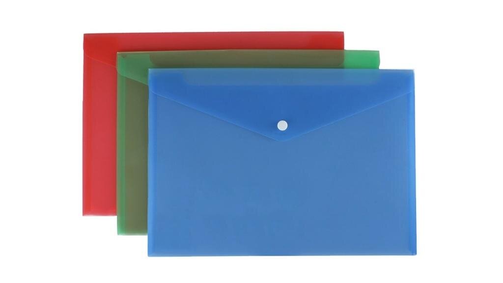 Wykonana z kolorowej transparentnej folii PP. Zamykana na wygodny nap zabezpieczający dokumenty przed wypadaniem. Idealna do segregowania i przechowywania dokumentów, notatek itp. Mix kolorów w opakowaniu. Format A4. przeczytaj całość