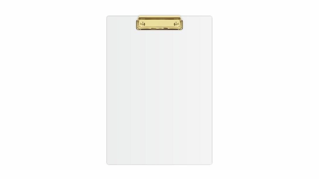 Elegancka podkładka wykonana z białej folii PVC, wewnątrz usztywniona tekturą. Wyposażona w sprężysty mechanizm zaciskowy w kolorze złota, służący do przytrzymywania kartek papieru. Idealnie sprawdza się podczas publicznych wystąpień przy okazji takich uroczystości, jak komunia czy ślub. Dzięki twardej konstrukcji, doskonale spełnia funkcję podkładki do pisania. Format A4.