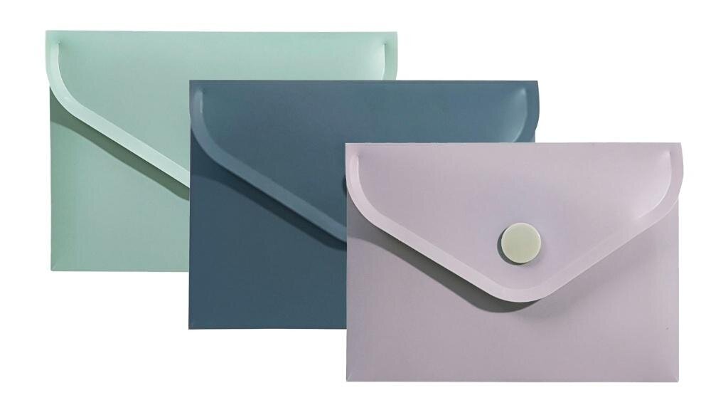 Teczka kopertowa wykonana z tworzywa PP z efektem soft touch. Zamykana na wygodny nap zabezpieczający zawartość przed wypadaniem. Idealna do segregowania i przechowywania dokumentów, notatek itp. Format A7. Mix kolorów w opakowaniu. Produkt z serii Morandi, utrzymanej w palecie szarości premium...