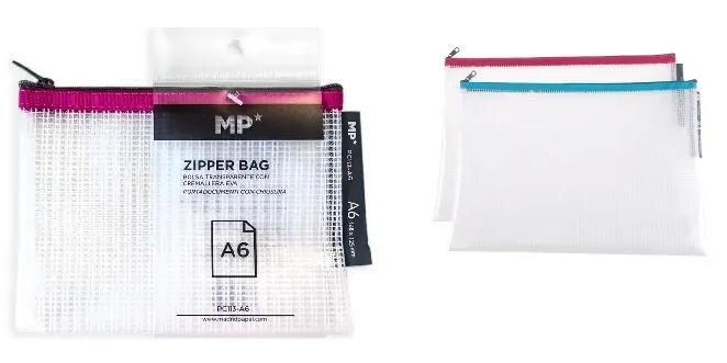 Plastikowa torba siatkowa Eva zapinana na zamek, wykonana z materiału ekologicznego. Uniwersalne: na dokumenty, ołówki, długopisy, rzeczy osobiste...Wykonane z przezroczystego polipropylenie zamka błyskawicznego w kolorze niebieskimi różowym. Rozmiar A6. Wymiary torby: 168x 125 mm. Kolory zamków: różowy i turkusowy.