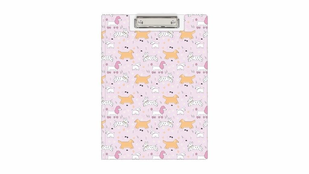 Wykonana z folii PVC z pełnym, ozdobnym nadrukiem, wewnątrz usztywniona tekturą. Wyposażona w sprężysty mechanizm zaciskowy służący do przytrzymywania kartek papieru. Wewnątrz, na całej szerokości, podłużna kieszeń z miejscem na długopis na zgięciu okładek. Wersja zamykana, z okładką. Służy jako... przeczytaj całość