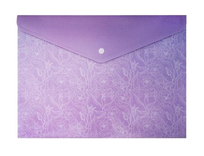 Teczka w formacie A4 koloru fioletowego z nadrukiem w kwiaty, zamykana na zatrzask. przeczytaj całość