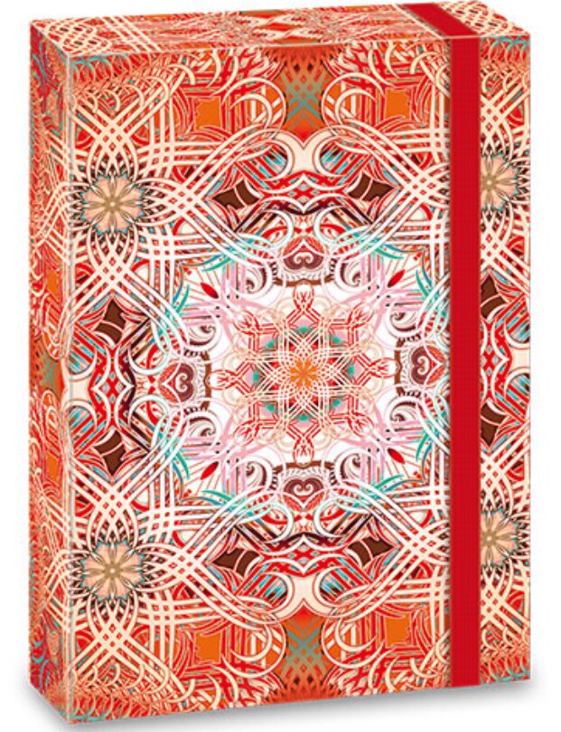 Box na sešity z kolekce Mandaly od výrobce Ars Una pro uložení dokumentů, výkresů a sešitů ve formátu A4. vyrobeno z vysoce odolného, tvrdého lamino kartonu tloušťky 7 mm uzavírání boxu je pomocí širší pružné gumičky, která důkladně udrží složku sevřenou rozměry: 23,5 x 4,8 x 33 cm przeczytaj całość