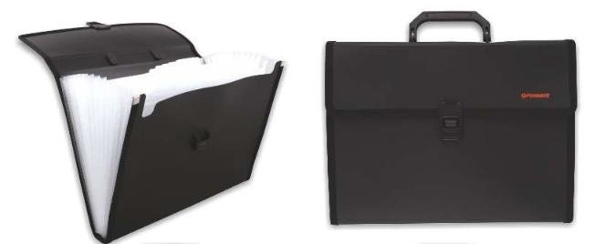 Wykonana z mocnego polipropylenu o grubości 0,6 mm, obszytego taśmą kaletniczą. Z rączką, zamykana nazamek. Zawiera 12 przegródek dostosowanych do dokumentów formatu A4 oraz przekładki indeksujące. Wymiary: 330 x 240 x 35 mm. Pakowana pojedynczo w woreczek foliowy. przeczytaj całość