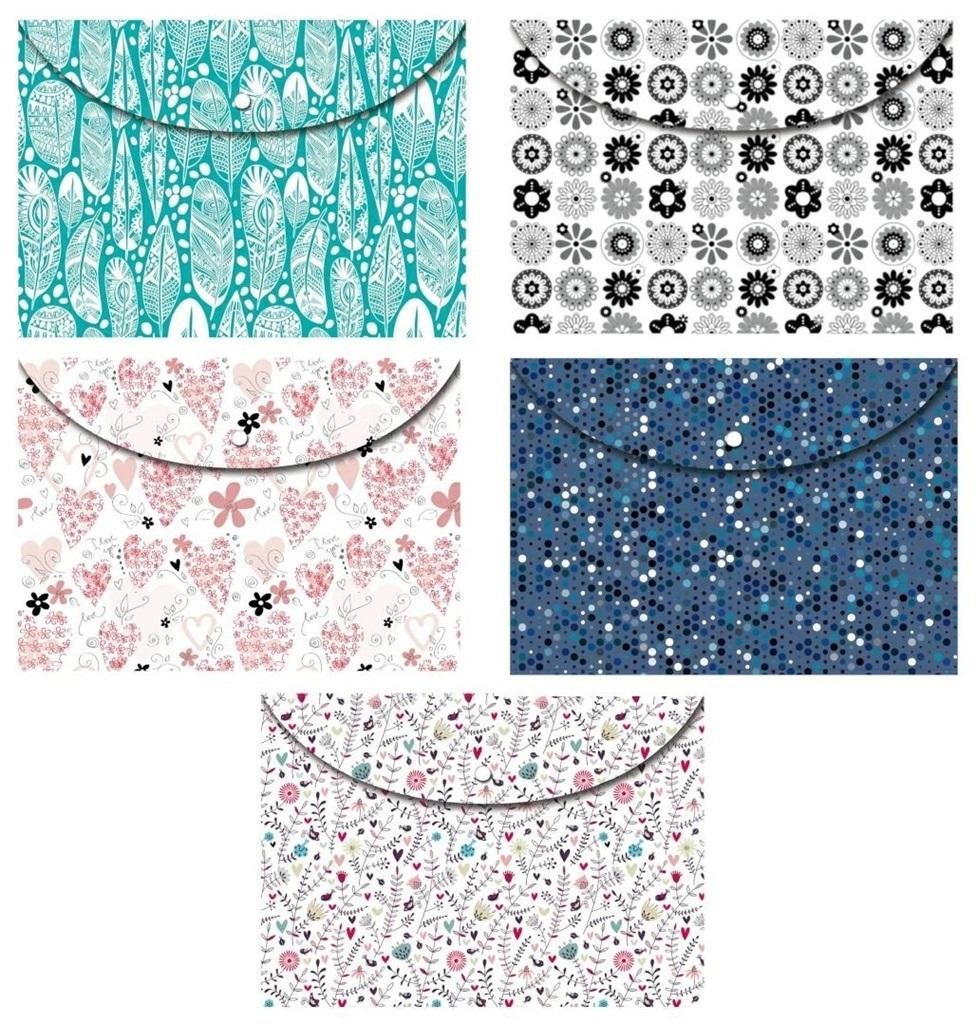 Ozdobna teczka kopertowa A7 marki Stil. Wykonana z trwałego polipropylenu z nadrukiem. Zamykana na zatrzask typu nap. Dostępna w różnych wzorach. przeczytaj całość
