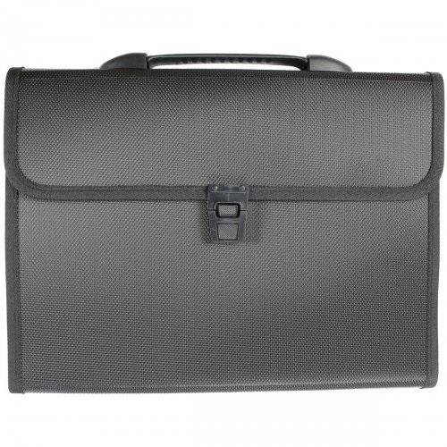 Teczka PP A4/12 przegród z rączkązamykana na zamek,tłoczona fakturakolor czarnyobszyta lamówką w kolorze czarnym przeczytaj całość