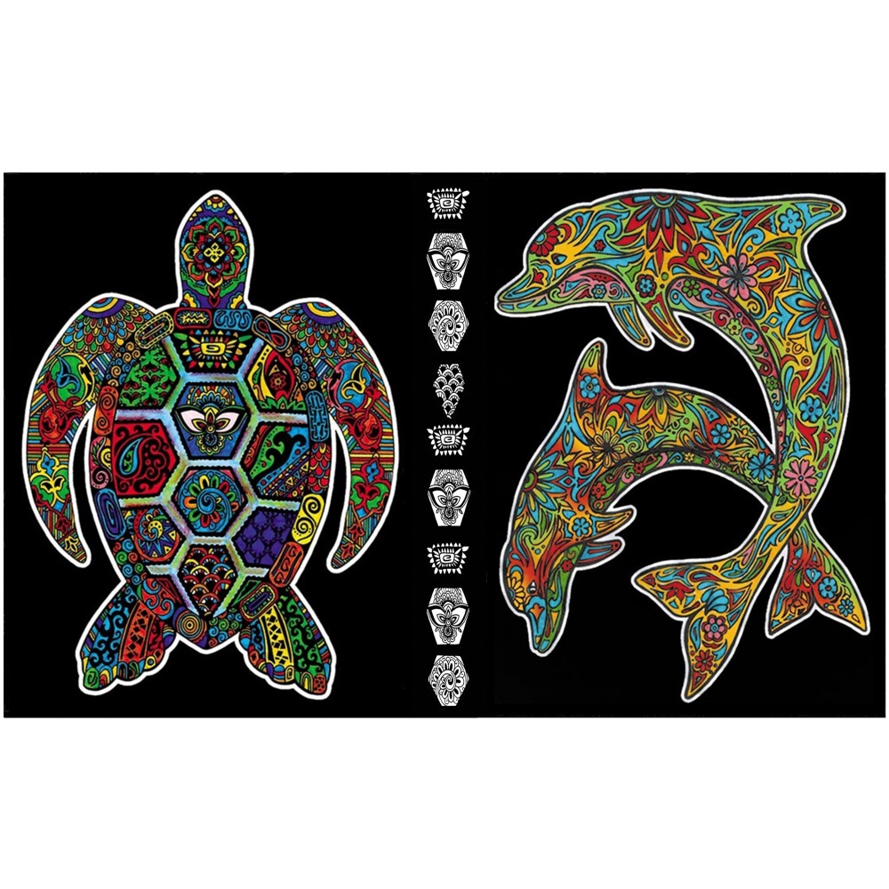 SAMETOVÉ DESKY SE DVĚMA OBRÁZKY - MOTIV DEFÍNI - ŽELVA.Sametové desky se dvěma obrázky k vybarvení na přední a zadní straně, motiv delfínů a želvy. Vybarvovací šablona je ze sametu, který usnadňuje vybarvení. Obrázek můžete vybarvit fixami, pastelkami nebo voskovkami. Okraje motivu jsou přesně...
