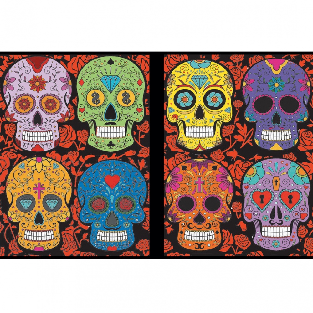 SAMETOVÉ DESKY SE DVĚMA OBRÁZKY - MOTIV LEBKA.Sametové desky se dvěma obrázky k vybarvení na přední a zadní straně, motiv Lebka. Vybarvovací šablona je ze sametu, který usnadňuje vybarvení. Obrázek můžete vybarvit fixami, pastelkami nebo voskovkami. Okraje motivu jsou přesně vymezeny sametem a...