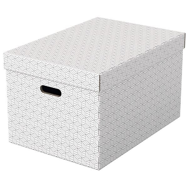 Sada tří velkých lepenkových úložných boxů s moderním a stylovým geometrickým designem.