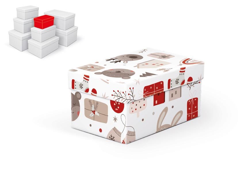 Vánoční dárková krabice o rozměrech 16 x 10 x 8 cmDodáváme pouze v setu 8 dárkových krabiček, které jsou ve stejném designu, ale v různých velikostech. Při vložení do košíku se automaticky vloží i ostatní krabičky, tak aby jste měli v košíku vždy celý, kompletní set.Uvedená cena je za 1...