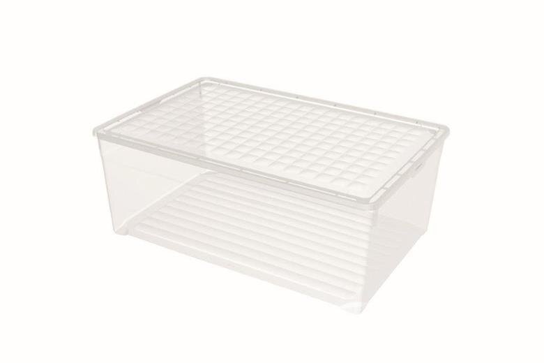 Praktyczny przezroczysty pojemnik Curver pomaga utrzymać porządek w szafie i w domu. Dzięki pojemności 45 litrów i niskim wymiarom jest idealny do przechowywania większych elementów tekstyliów, pościeli i innych dodatków.