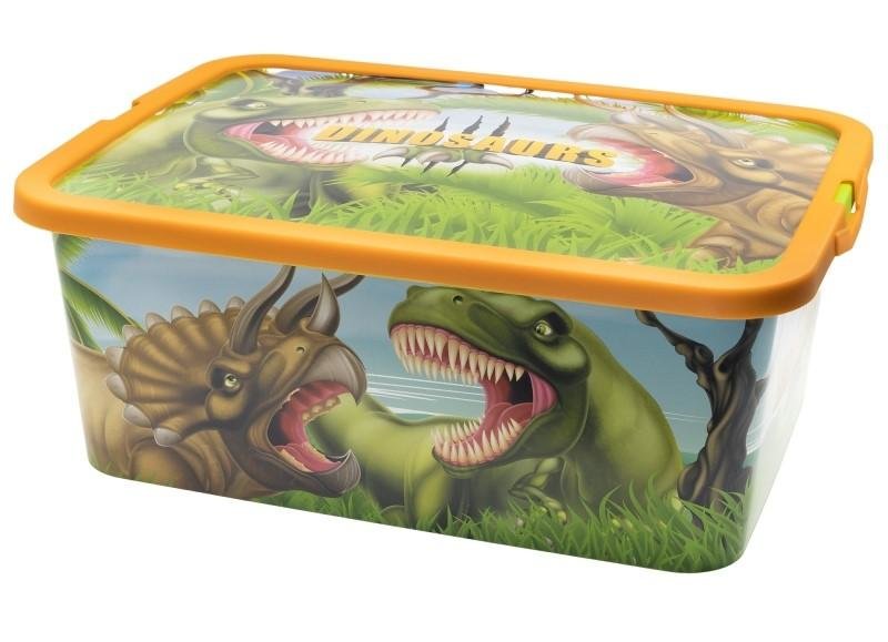 Pojemnik DINOSAURUS to idealne rozwiązanie do przechowywania zabawek, drobiazgów i sezonowych rzeczy w pokoju dziecka. Dzięki solidnej pokrywie na klips zawartość zawsze będzie bezpiecznie przechowywana, a jednocześnie łatwo dostępna. Pojemnik jest zaprojektowany bez ostrych krawędzi, co minimalizuje ryzyko skaleczeń, i wykonany z wysokiej jakości, bezpiecznego dla zdrowia plastiku, odpowiedniego dla dzieci od 3. roku życia. Praktyczna pojemność 13 litrów pozwala schować wiele przedmiotów, nie zajmując przy tym zbyt dużo miejsca.