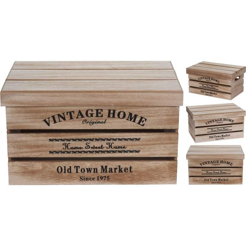 Sada tří přepravek s víkem.Materiál: dřevo Paulovnie Fortuneova.Povrchová úprava – vypalovaná barva.Praktické úchyty pro snadné přenášení.Rozměry:Velká: 42 x 32 x 23,5 cmStřední: 36 x 25 x 19,5 cmMalá: 30 x 19 x 15,5 przeczytaj całość