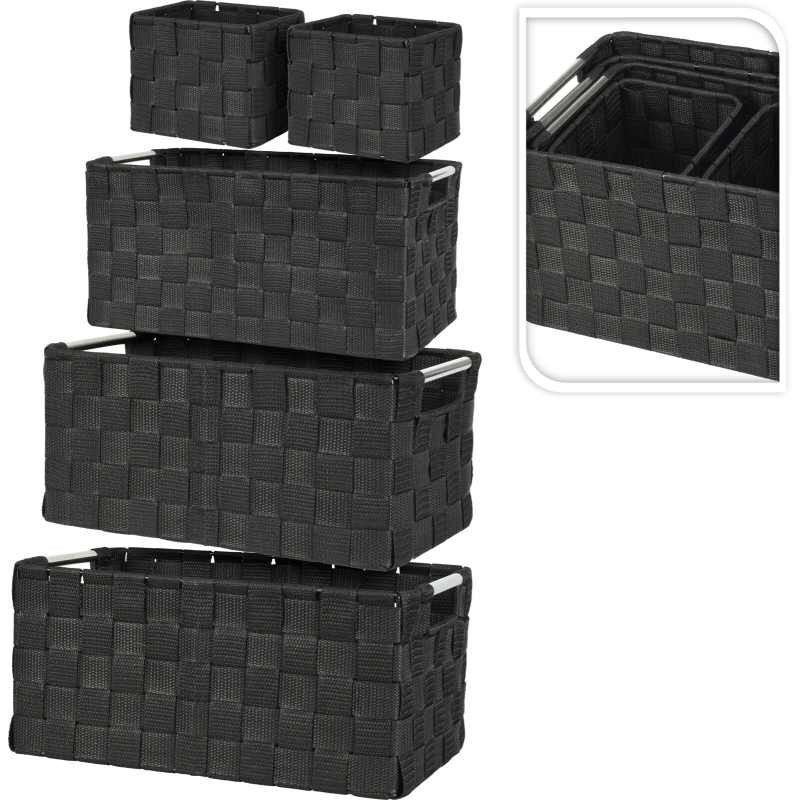 Sada úložných košíků s rukojeťmi 5 ks černá