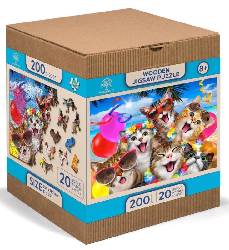 Wooden City Puzzle Kočičí párty 200 dílků, dřevěné