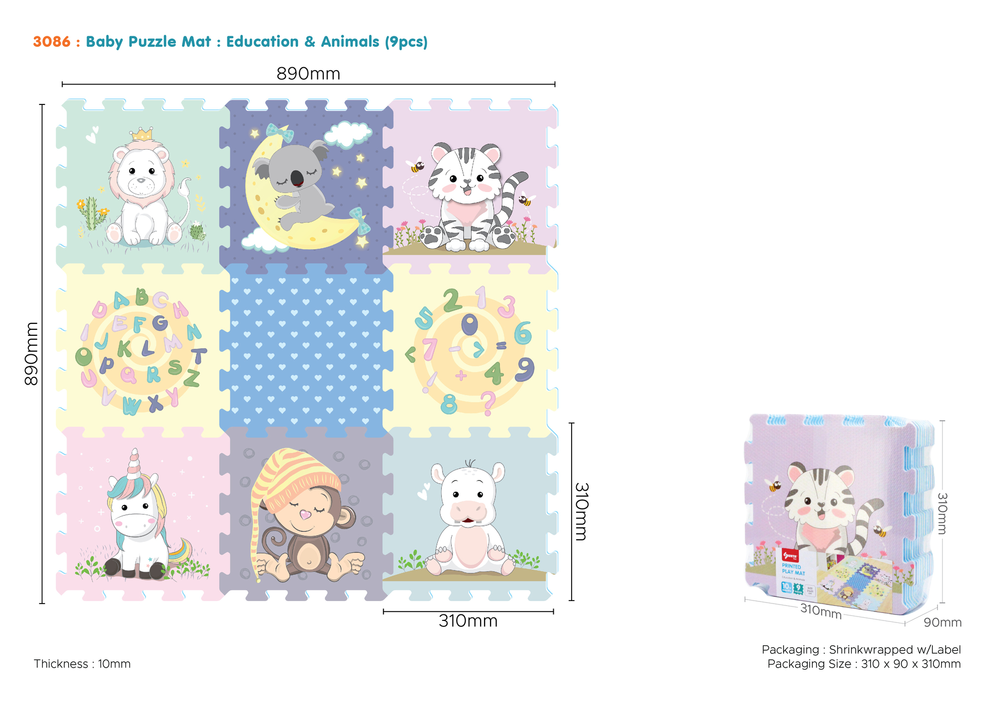 Měkké bloky se zvířátky naučné. Rozměry 1 části 31x31 cm. Balení obsahuje 9 ks. Rozměry při sestavení do čtverce, 89x89 cm. przeczytaj całość