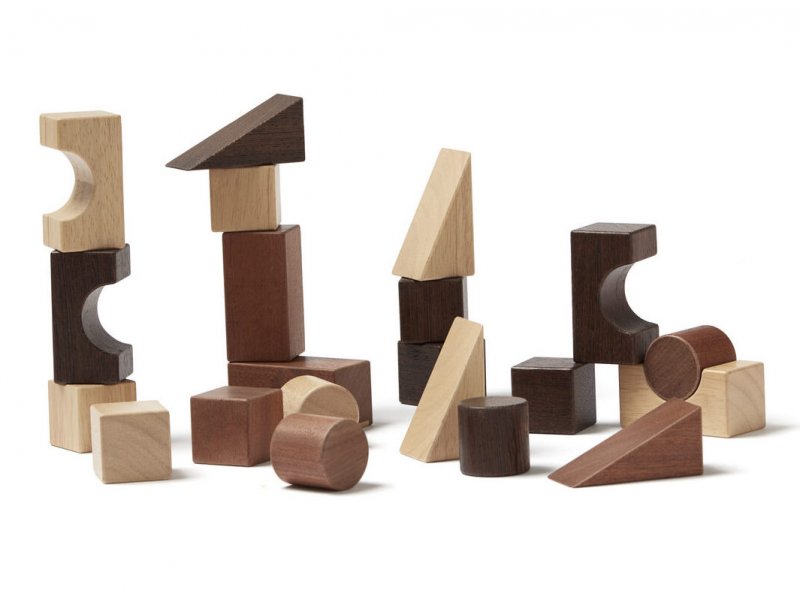 Dřevěné kostky různých tvarů v přírodních barvách jsou klasickou hračkou, rozvíjející motorické dovednosti, jednotlivé smysly i fantazii dítěte.