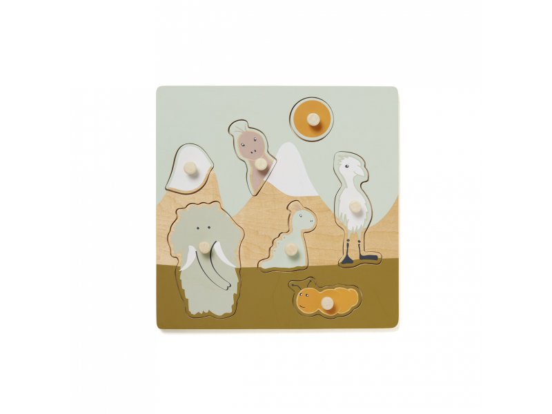 Sedm dřevěných vyjímatelných zvířátek a tvarů je vybaveno úchytkami pro snadné uchopení dětskými ručičkami. Hračka rozvíjí koordinaci ruka / oko a jemnou motoriku dítěte.Puzzle patří do kolekce hraček Kids Concept Neo, inspirované dobou kamennou.Rozměry: 26 x 26 x 2,5 cmVhodné pro děti od 12... przeczytaj całość
