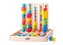 Nawlekanie drewnianych koralików na patyczki według wzorów. Dziecko, zgodnie ze wzorem narysowanym na drewnianych tabliczkach, nawleka na patyczek kolorowe koraliki tak, aby odpowiadały wzorowi. Gra motoryczno-dydaktyczna, która w nienachalny sposób uczy dzieci rozpoznawać podstawowe kolory i kształty.