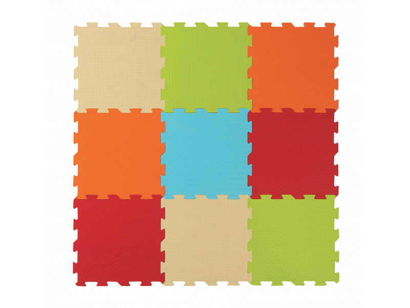 Sada různobarevných pěnových puzzlí. Jednotlivé díly mají různorodé povrchy a barvy a podněcují tak rozvoj jednotlivých smyslů a představivosti dítěte.Z dílů sestavíte hrací podložku i kostku. Materiál je ohebný, odolný, tlumí nárazy a tepelně izoluje, takže složené puzzle jsou ideální i jako...