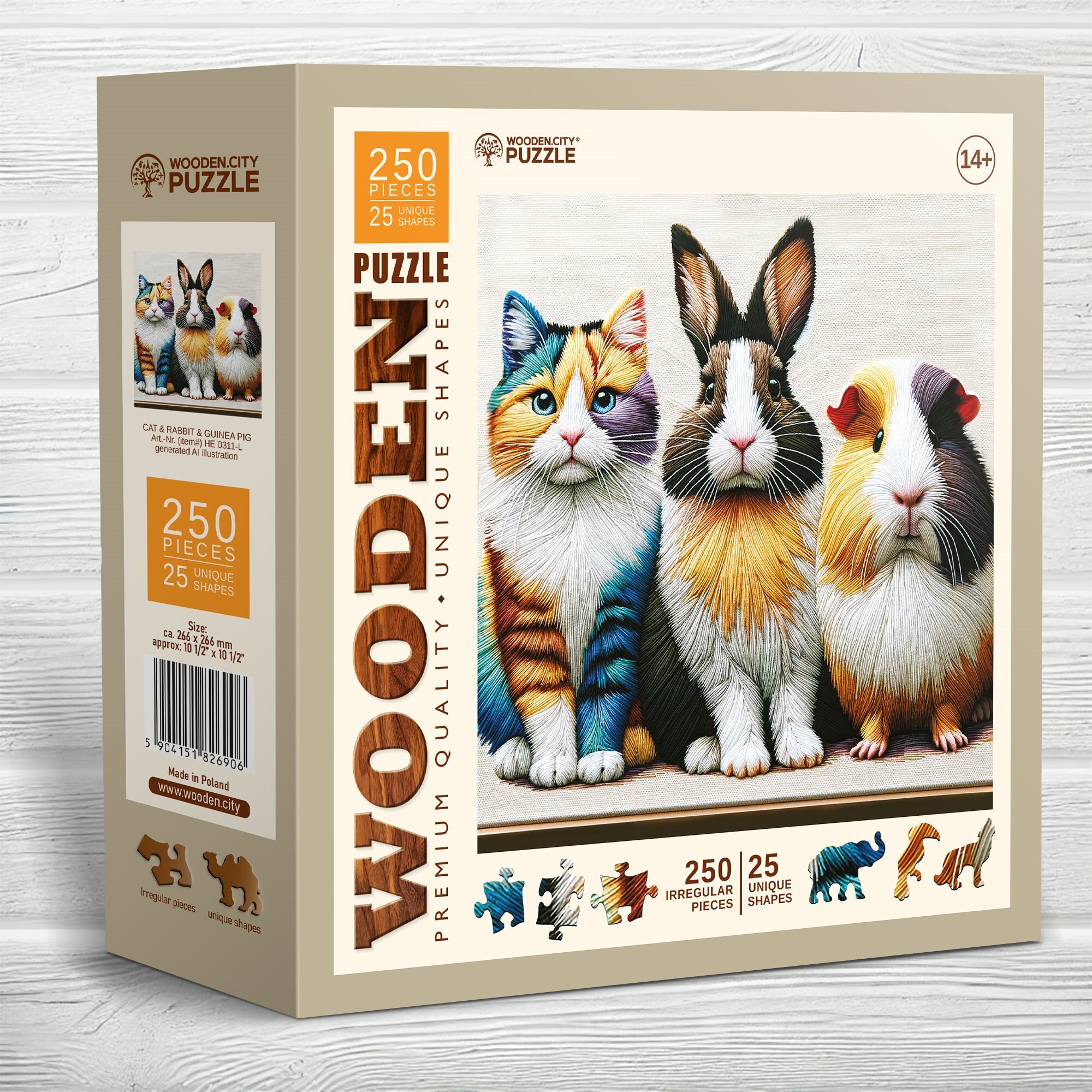 WOODEN CITY Dřevěné puzzle Kočka, králík a morče 250 dílků