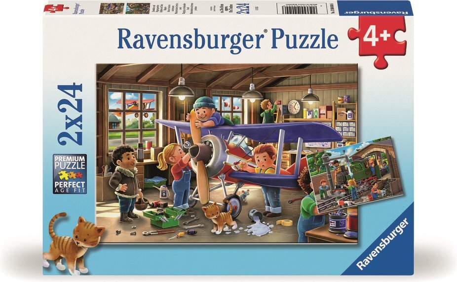RAVENSBURGER Puzzle Staň se opravářem letadel a vlaků! 2x24 dílků